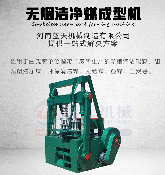 河南藍天機械制造有限公司生產無煙潔凈煤成型機目的在于面對當今中國環(huán)境污染,霧霾困擾等問題促進無煙潔凈煤民用使用率。