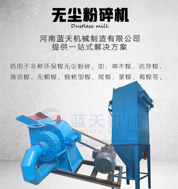 河南藍天機械制造有限公司生產(chǎn)的無塵粉碎機專業(yè)針對潔凈型煤、清潔型煤、無煙木炭、炭粉的粉碎處理,是新型環(huán)保無塵粉碎機設(shè)備,公司提供一站式解決方案,滿足用戶需求的同時不斷提升環(huán)保無塵粉碎機技術(shù),專業(yè)無塵粉碎機廠家請認準“藍天”!