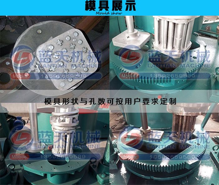 蜂窩炭成型機(jī)方便搭配多種不同規(guī)格模具,通過調(diào)換模具能生產(chǎn)出直徑在270mm以下、高度120mm以下,不同規(guī)格的蜂窩炭,可生產(chǎn)圓形、方形、梅花形、扇形、中心有孔無孔等特殊形狀?梢宰鲂滦蜔咎、易燃炭,秸稈煤炭、點(diǎn)火煤,等。