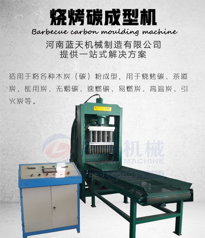 河南藍天機械制造有限公司設(shè)計的燒烤碳成型機,采用上下液壓,上壓120T,下頂120T,因為壓力的作用,做出來的燒烤碳密度大,無煙、易燃,所以也被稱為液壓燒烤碳成型機,無煙燒烤碳成型機,形狀外觀可以根據(jù)用戶的要求定做。藍天機械生產(chǎn)的燒烤碳成型機主要是針對碳的特性,將碳粉壓成型。目前新設(shè)計的液壓燒烤碳成型機,采用了上下同時施壓,上壓120T,下頂120T,做出來的燒烤碳密度非常大,滿足不少燒烤餐廳、烤肉店、與戶外燒烤愛好者的需求。