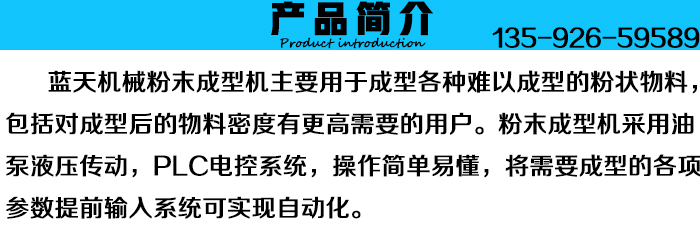 粉末成型機是河南藍(lán)天機械制造有限公司應(yīng)廣大新老用戶的需要,在原有成型機基礎(chǔ)上總結(jié)生產(chǎn)過程中的實踐經(jīng)驗,同時吸取了國外同類型機種的優(yōu)點,新研制生產(chǎn)的全自動粉末成型機。“藍(lán)天”全自動粉末成型機擁有液壓傳動,PLC電控系統(tǒng),操作簡單易懂,壓力大,廣泛用于壓制難以成型的各種粉狀物料,如金屬粉,因此也被稱呼為金屬粉末成型機。粉末成型機整機結(jié)構(gòu)簡單方便維護(hù)與維修,同時投資成本相比同類生產(chǎn)線要低的多,在市場上產(chǎn)生了強大的競爭力。